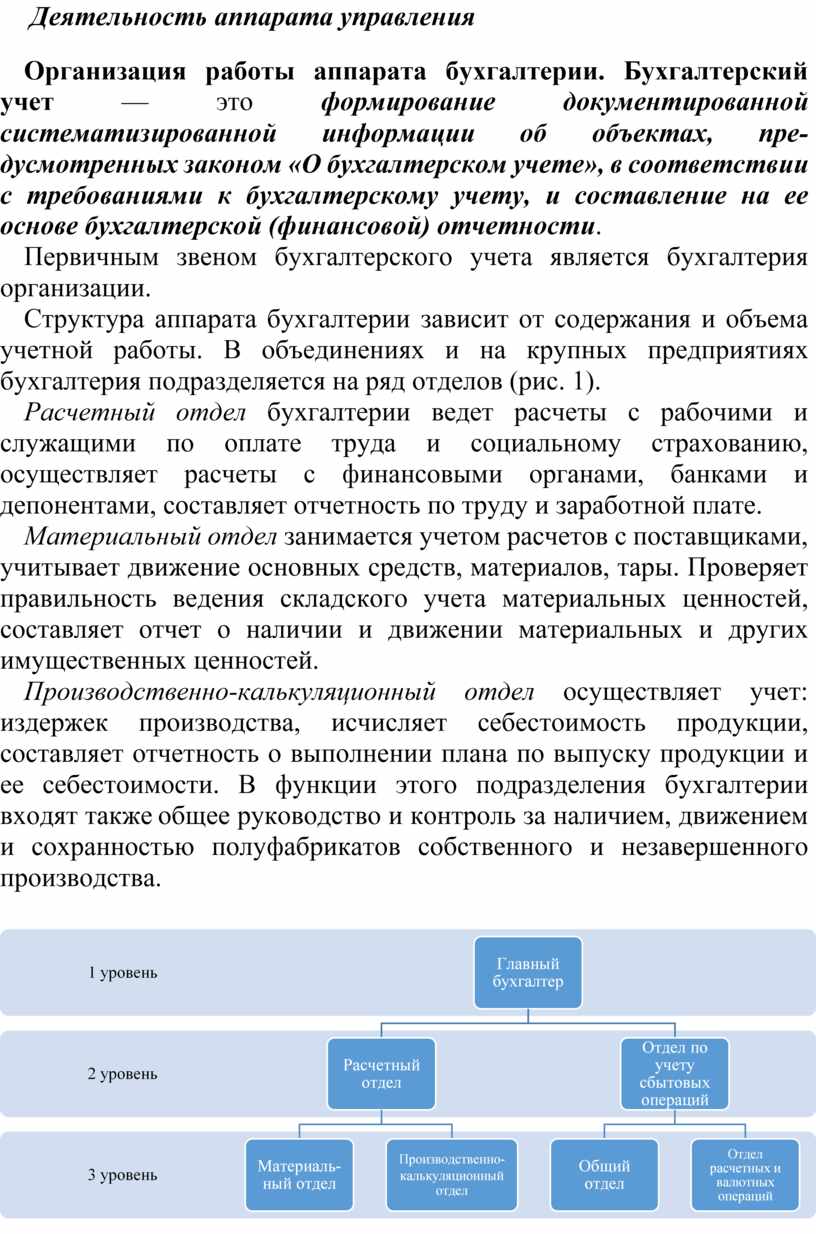 Организация работы аппарата бухгалтерии. Бухгалтерский учет — это формирование документированной систематизированной информации об объектах, предусмотренных законом «О бухгалтерском учете», в соответствии с требованиями к бухгалтерскому учету, и составление на ее основе бухгалтерской (финансовой) отчетности.