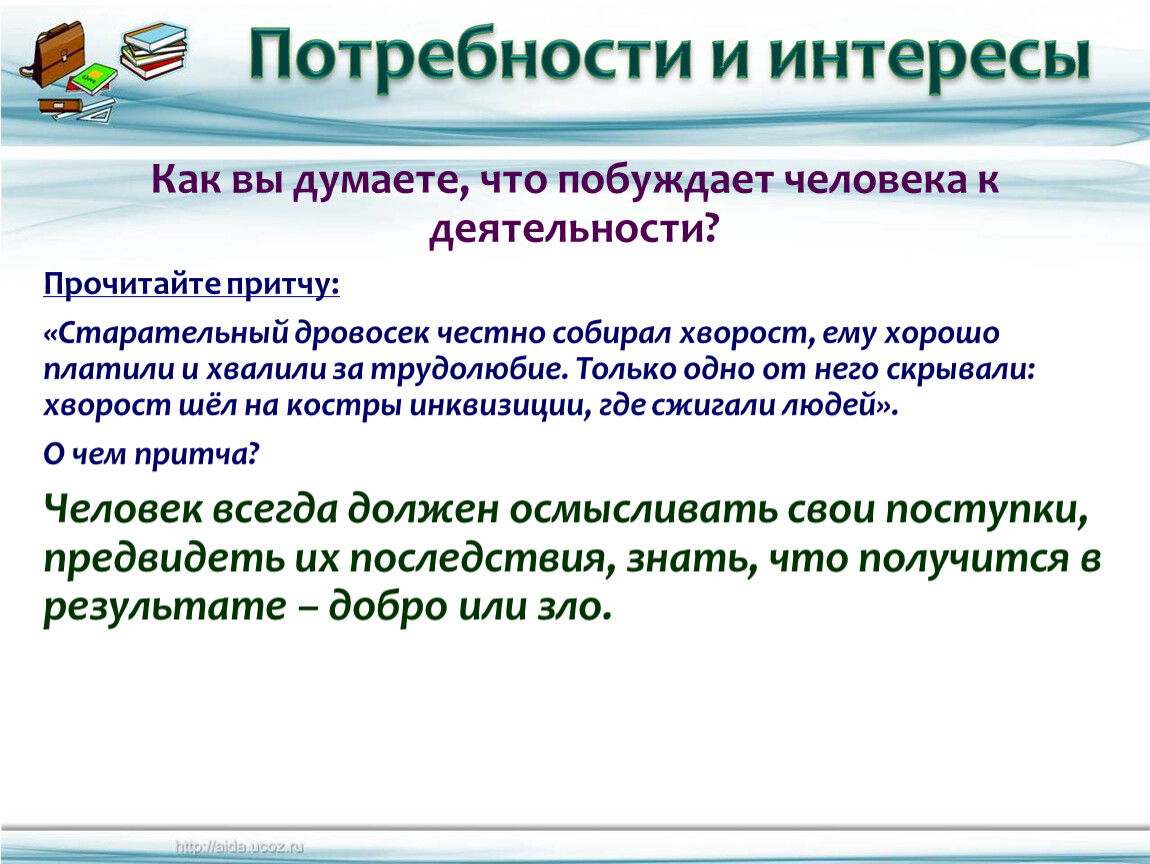 Как вы думаете, что побуждает человека к деятельности?