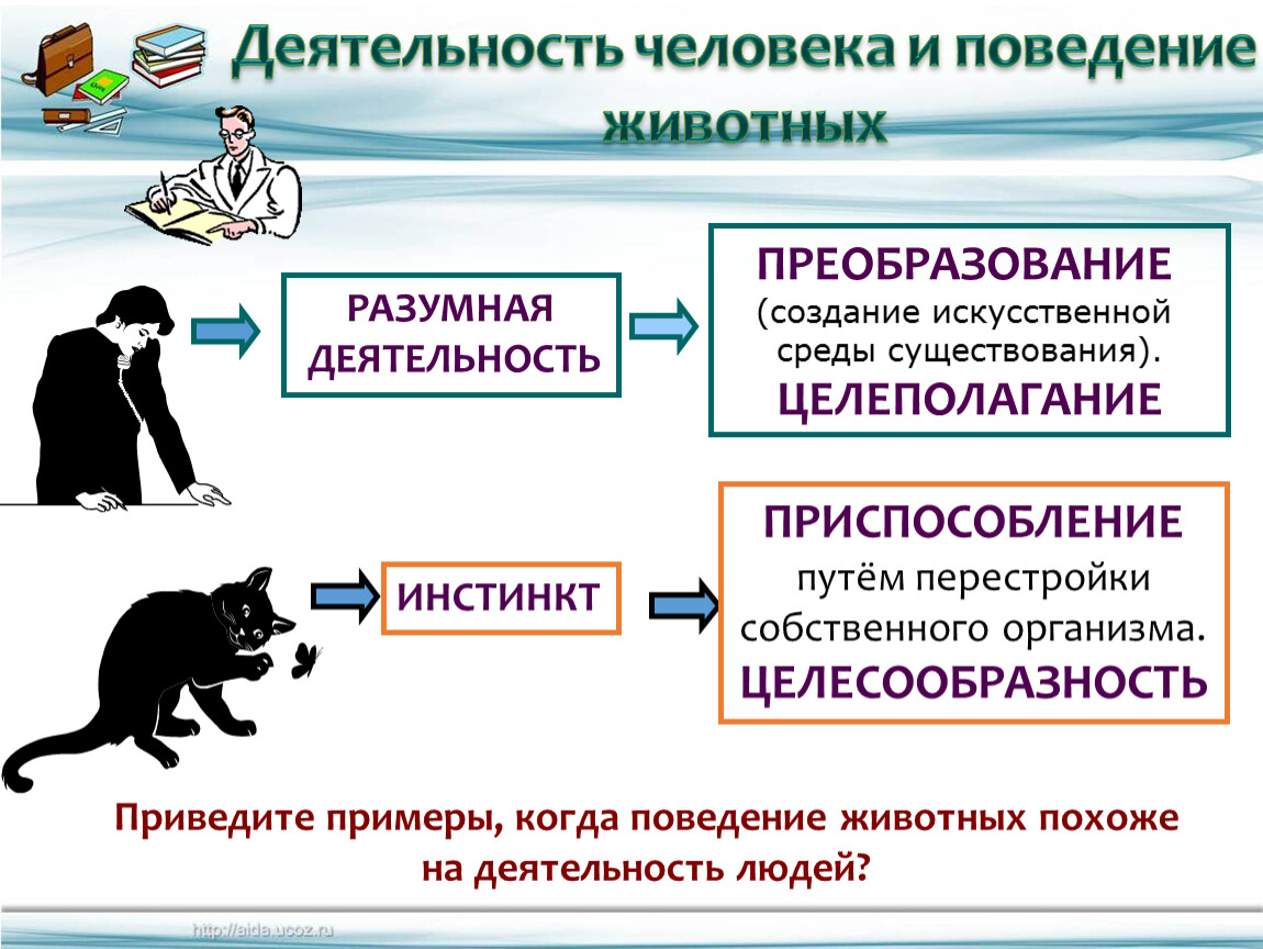 Приведите примеры, когда поведение животных похоже