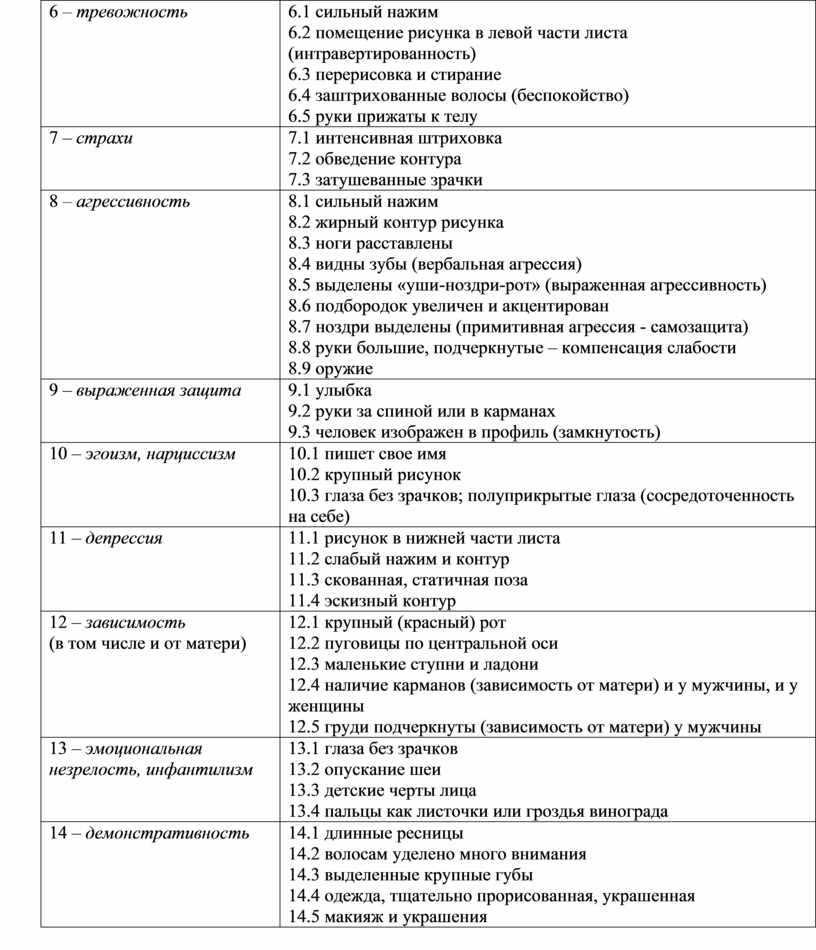 9.1 улыбка 9.2 руки за спиной или в карманах 9.3 человек изображен в профиль (замкнутость) |