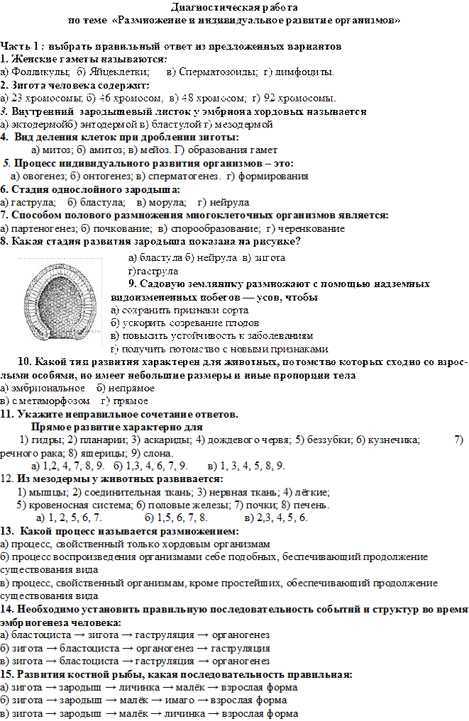 10. Какой тип развития характерен для животных, потомство которых сходно со взрослыми особями, но имеет небольшие размеры и иные пропорции тела