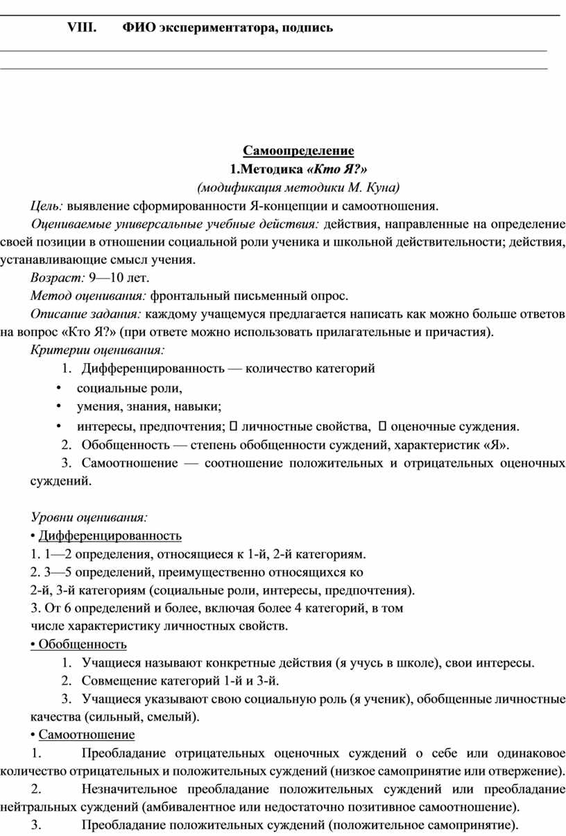 2-й, 3-й категориям (социальные роли, интересы, предпочтения). 3. От 6 определений и более, включая более 4 категорий, в том числе характеристику личностных свойств.