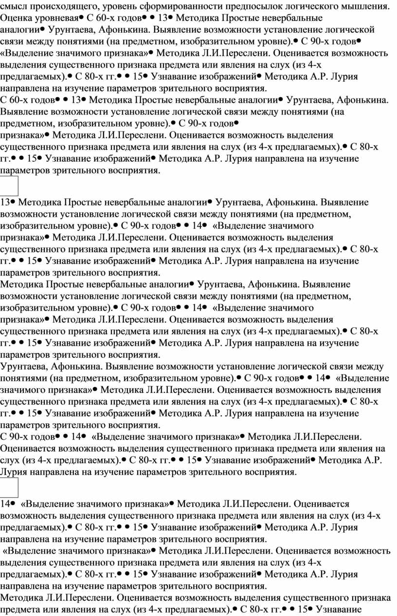 Урунтаева, Афонькина. Выявление возможности установление логической связи между понятиями (на предметном, изобразительном уровне). |