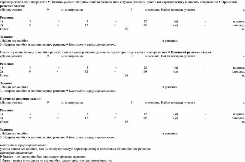 Показатель сформированности: ученик нашёл все ошибки, дал им содержательную характеристику и представил безошибочное решение. Критерии оценивания: 0
