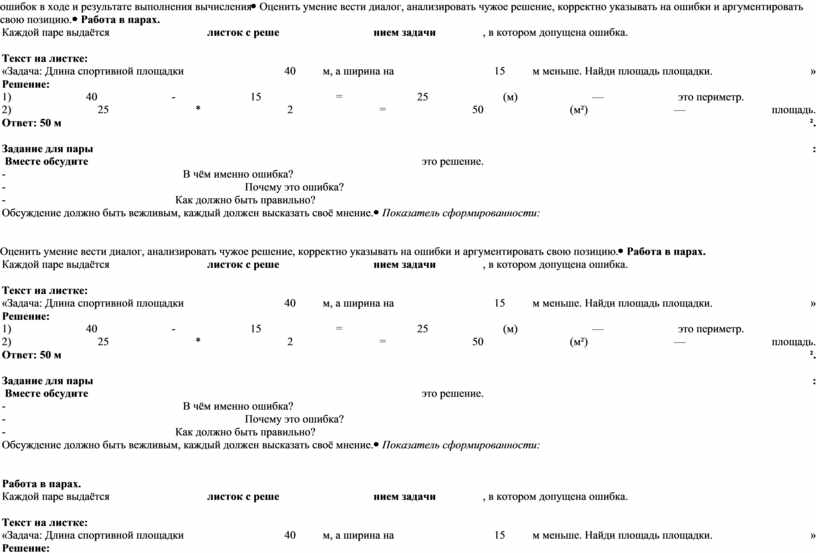 Показатель сформированности: ученики в паре смогли организовать конструктивный диалог, совместно выявили ошибки, пришли к согласию и подготовили аргументированное объяснение. Критерии оценивания: 0