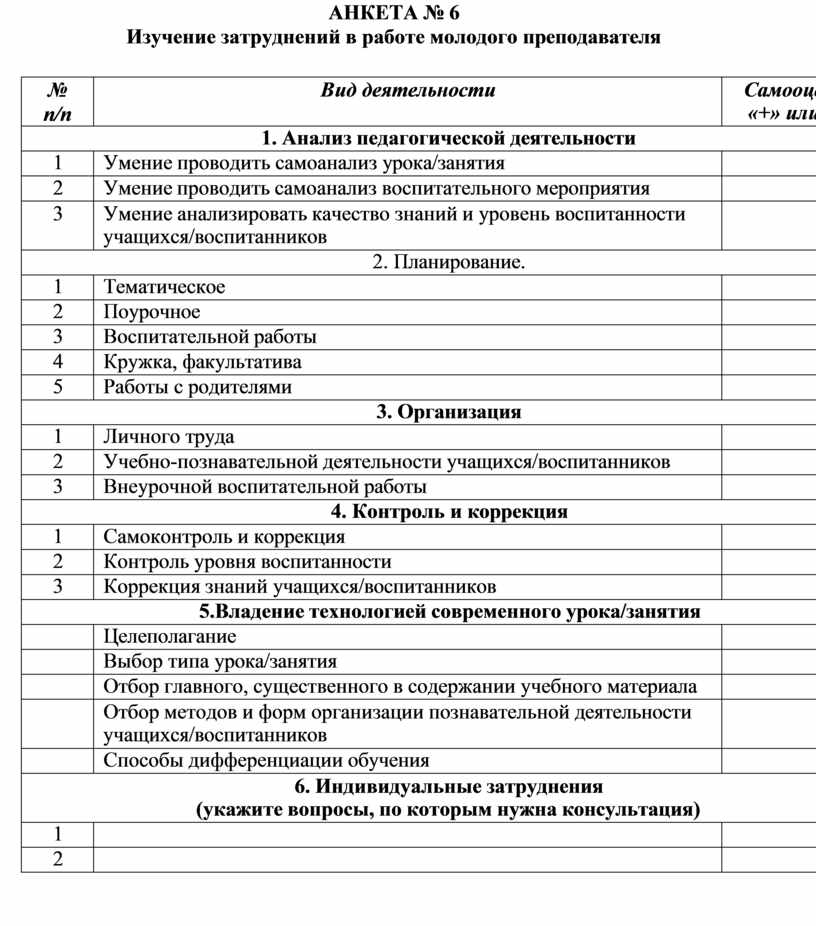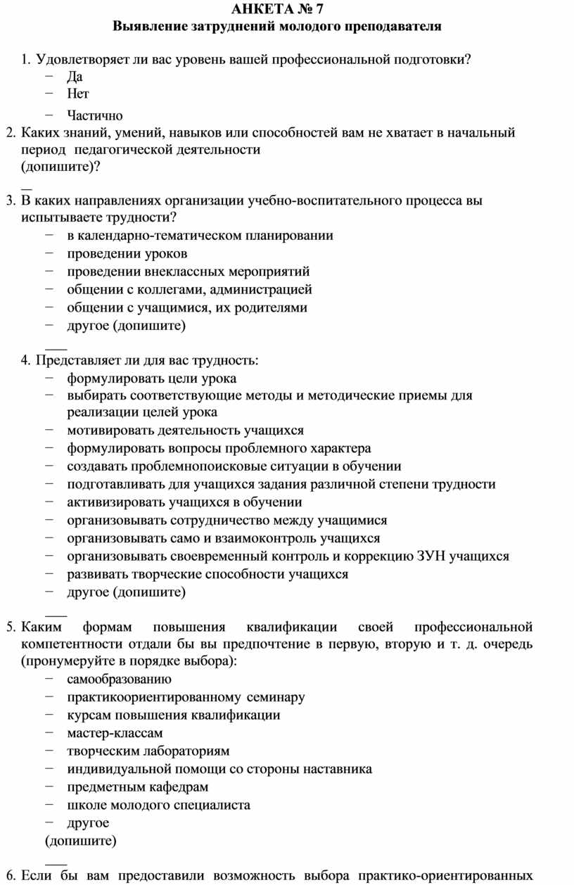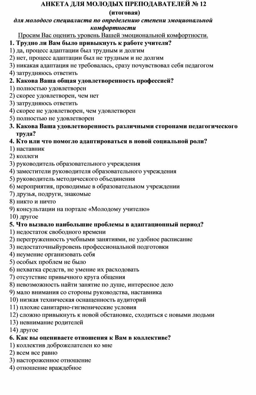 АНКЕТА ДЛЯ МОЛОДЫХ ПРЕПОДАВАТЕЛЕЙ № 12
