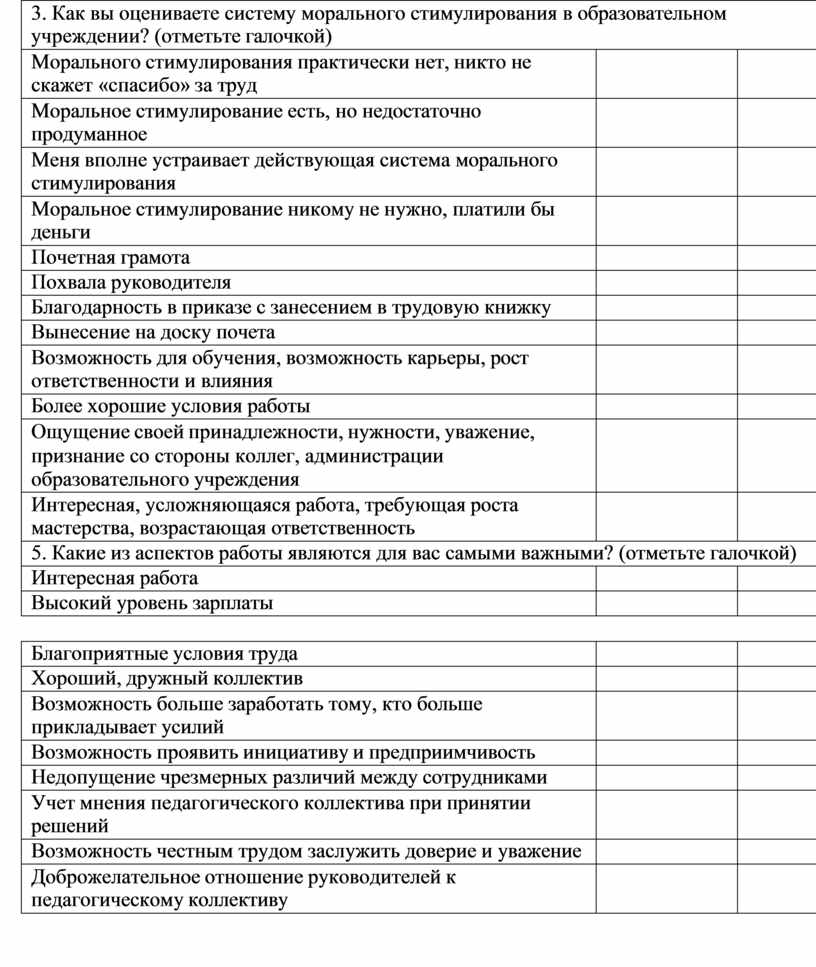 Укажите, удовлетворяют ли вас следующие аспекты вашей работы (поставьте галочку в соответствующим столбце). |