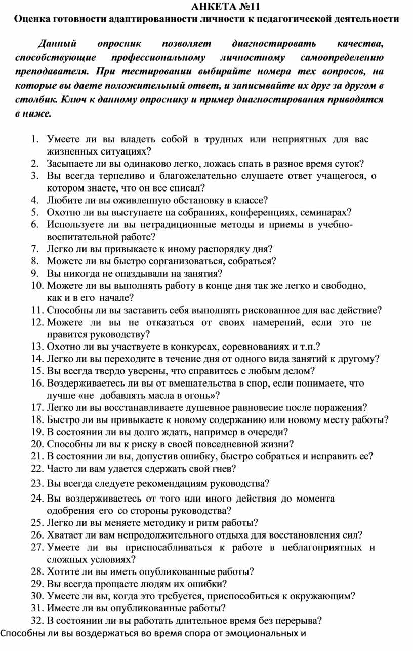 11. Оценка готовности и адаптированности личности к педагогической деятельности