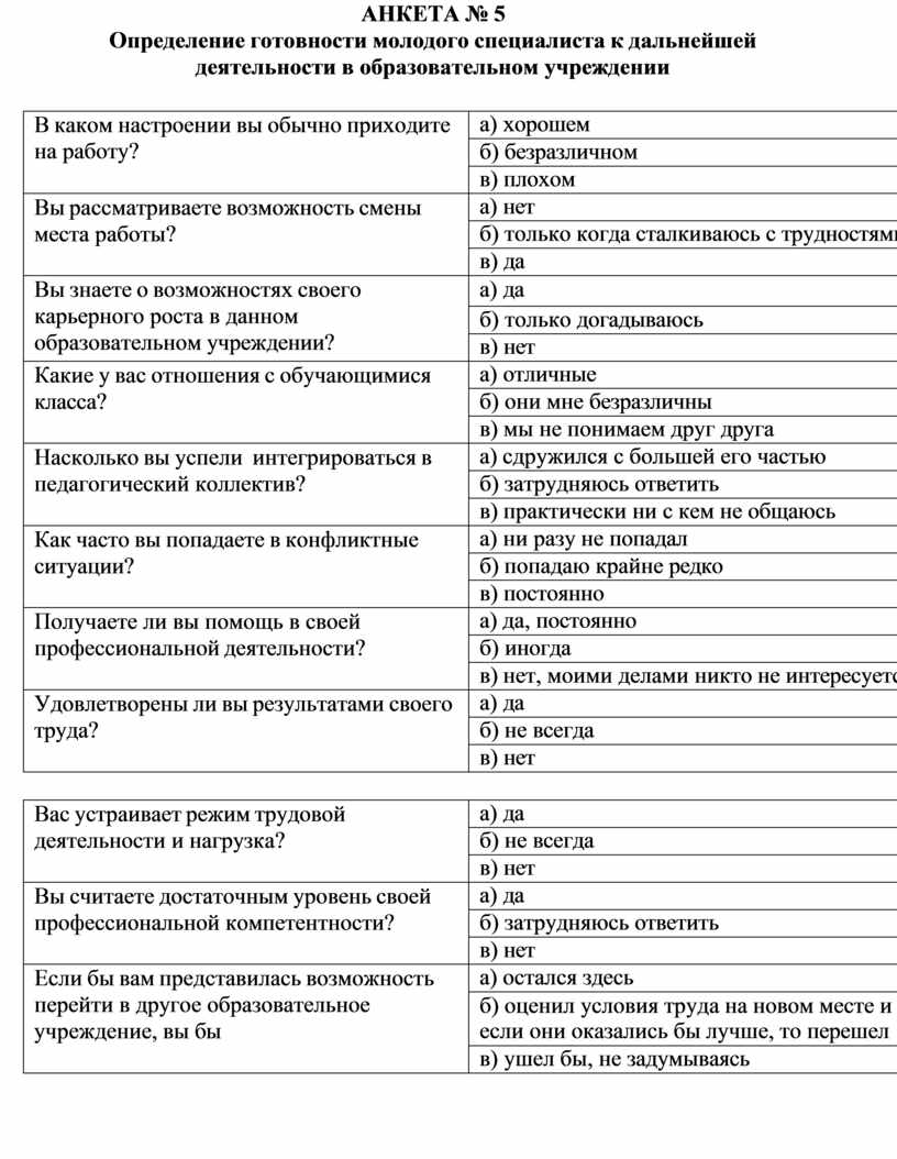 5. Определение готовности молодого учителя к дальнейшей деятельности в образовательном учреждении