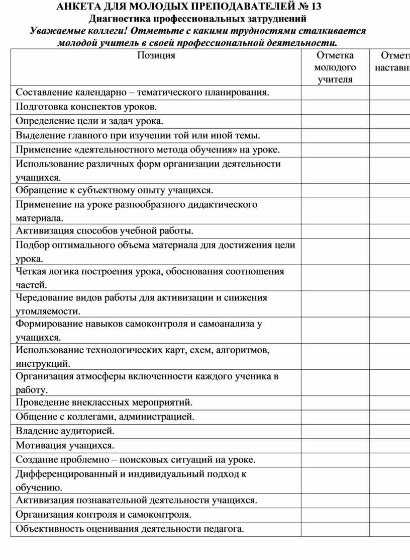 АНКЕТА ДЛЯ МОЛОДЫХ ПРЕПОДАВАТЕЛЕЙ № 13