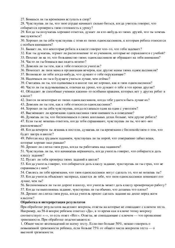 2. Методика диагностики уровня школьной тревожности Филлипса