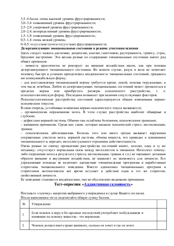 Диагностика аддиктивного и аутодеструктивного поведения.