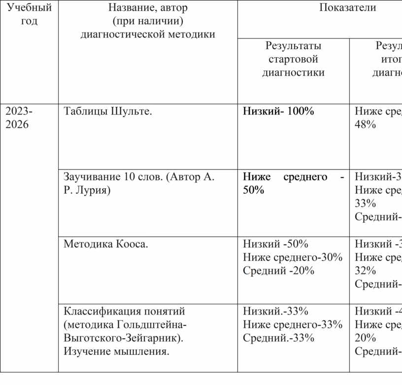 Результаты стартовой диагностики