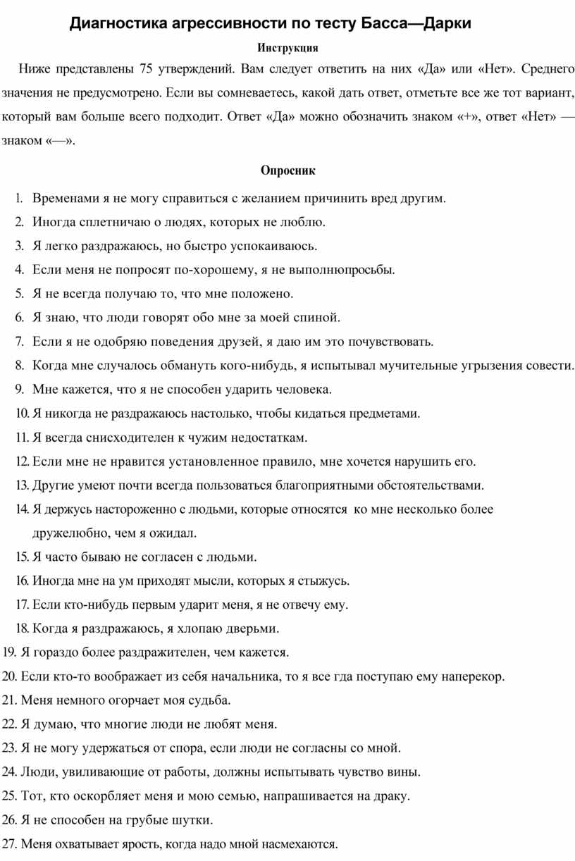 Ниже представлены 75 утверждений. Вам следует ответить на них «Да» или «Нет». Среднего значения не предусмотрено. Если вы сомневаетесь, какой дать ответ, отметьте все же тот вариант, который вам больше всего подходит. Ответ «Да» можно обозначить знаком «+», ответ «Нет» — знаком «—».
