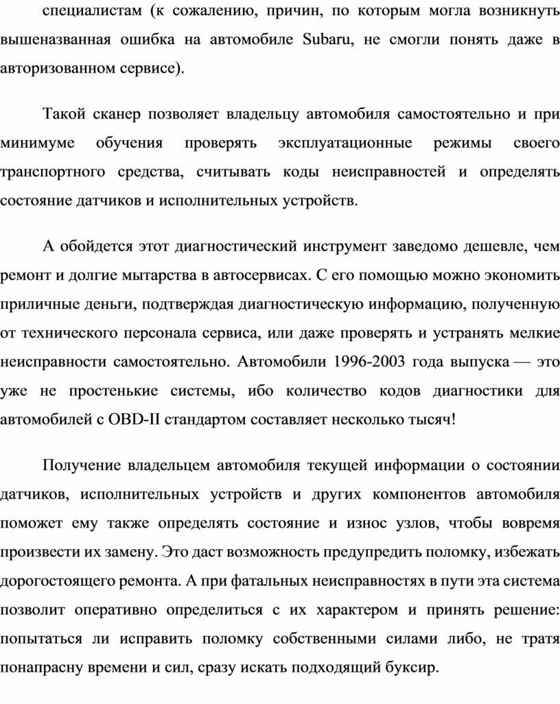 В принципе, такой индивидуальный сканер (работающий еще и как бортовой или маршрутный компьютер) очень полезен. Даже если не удается самому понять причину неисправности, то можно сохранить протокол работы автомобиля в формате Microsoft Excel (поток данных идет со скоростью примерно 500 Кбайт/ч) и приехать с этим файлом в сервис-центр к специалистам (к сожалению, причин, по которым могла возникнуть вышеназванная ошибка на автомобиле Subaru, не смогли понять даже в авторизованном сервисе).