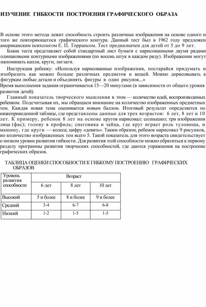 ТАБЛИЦА ОЦЕНКИ СПОСОБНОСТИ К ГИБКОМУ ПОСТРОЕНИЮ ГРАФИЧЕСКИХ ОБРАЗОВ
