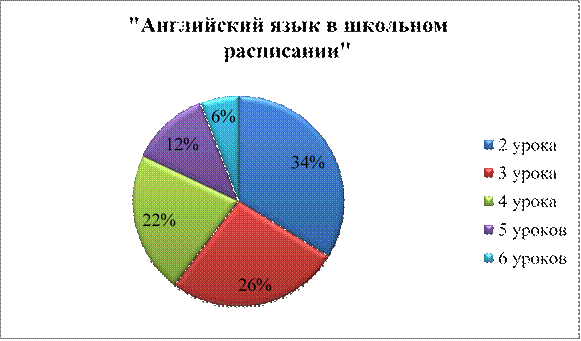 Далее учащимся была предложена анкета «Английский язык в школьном расписании», где нужно отметить желаемое количество уроков в неделю. Статистика соотношения ответов учащихся на вопрос данной анкеты отражается в диаграмме 5.