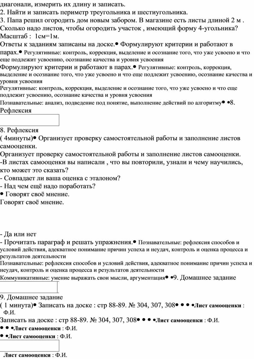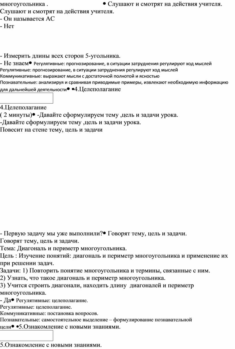 Технологическая карта урока математики по теме "Диагональ и периметр многоугольника". 5-й класс,