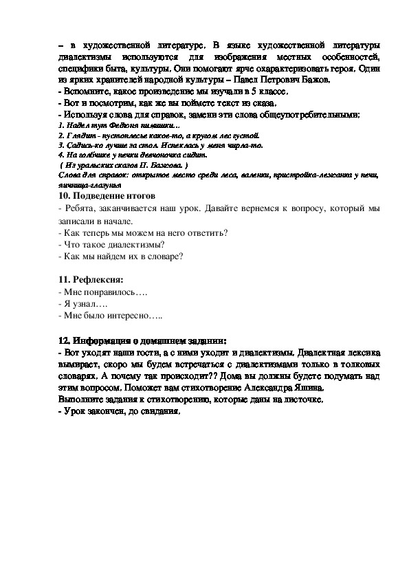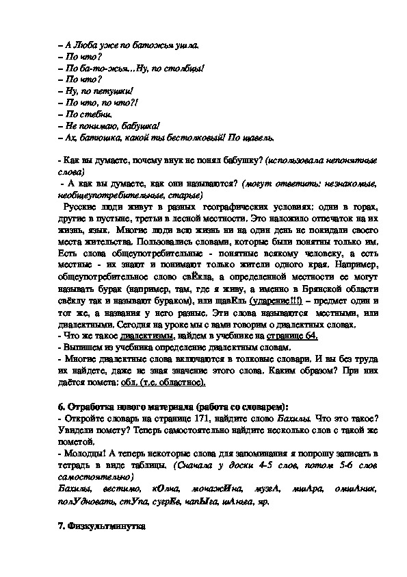 3. формировать умение находить диалектизмы в словаре, в тексте;