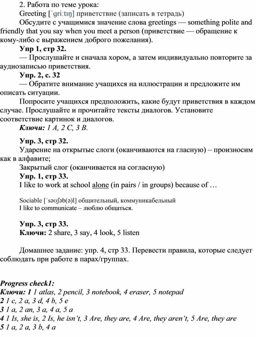 — Прослушайте и сначала хором, а затем индивидуально повторите за аудиозаписью приветствия.