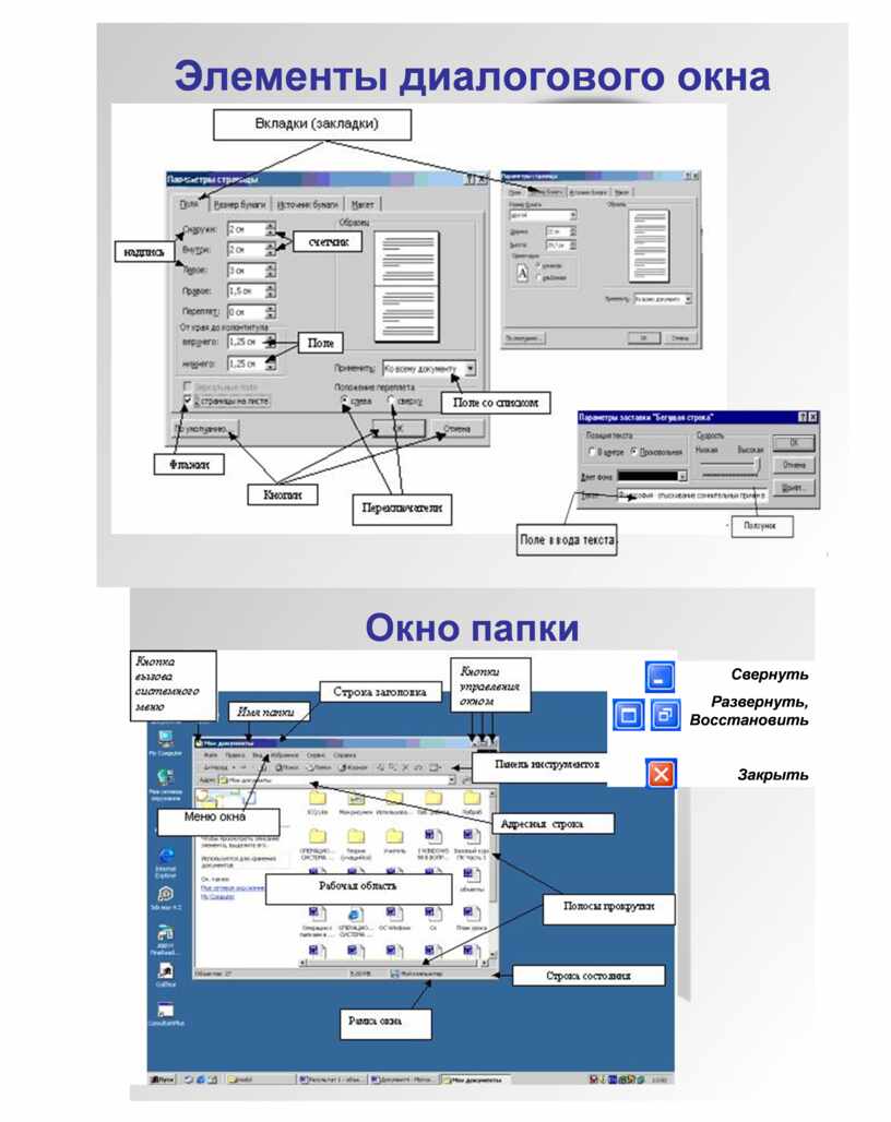 Диалоговые окна могут содержать следующие элементы управления: