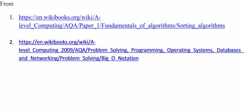 1. https://en.wikibooks.org/wiki/A-level_Computing/AQA/Paper_1/Fundamentals_of_algorithms/Sorting_algorithms