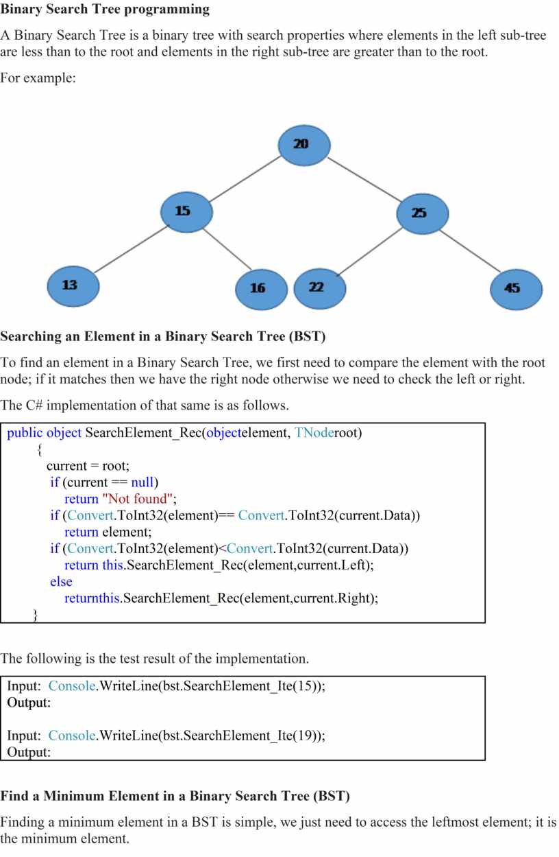 Input: Console.WriteLine(bst.SearchElement_Ite(15)); Output: