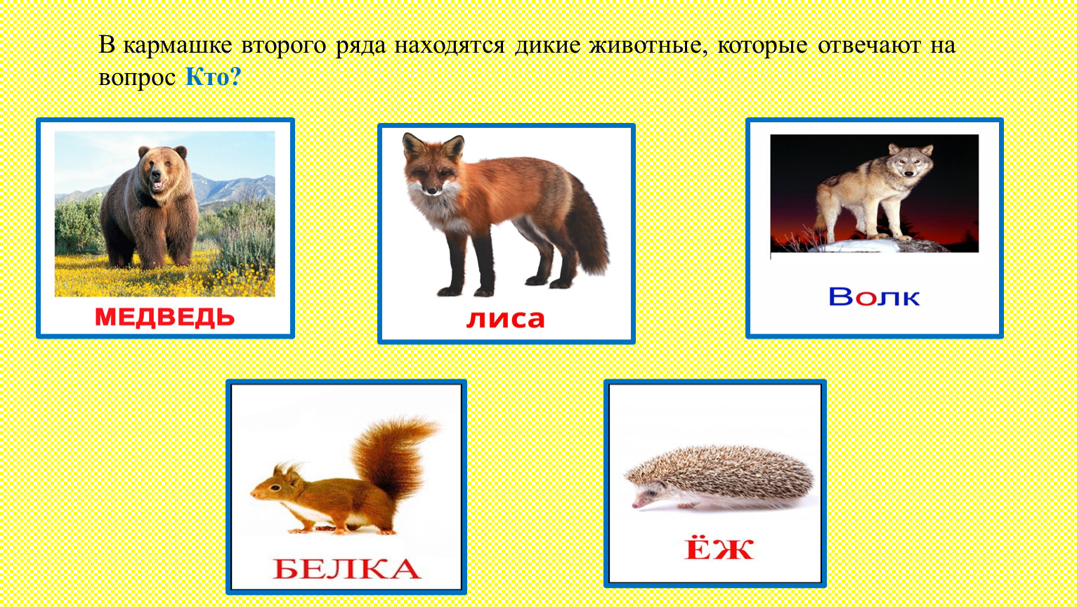 В верхнем кармашке находятся картинки с изображением времен года, которые могут помочь ответить на вопрос когда?