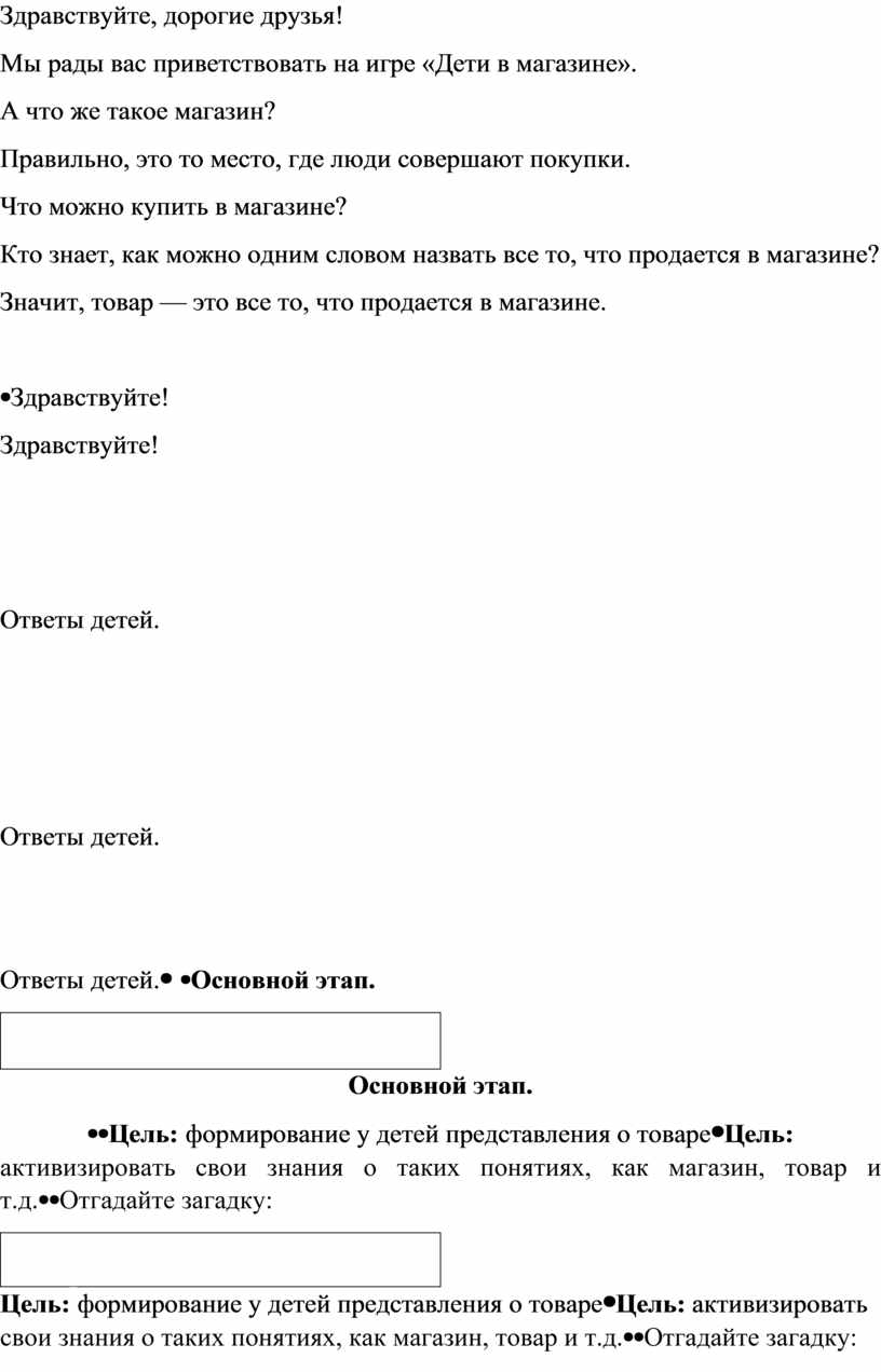 Цель: активизировать свои знания о таких понятиях, как магазин, товар и т.д. |