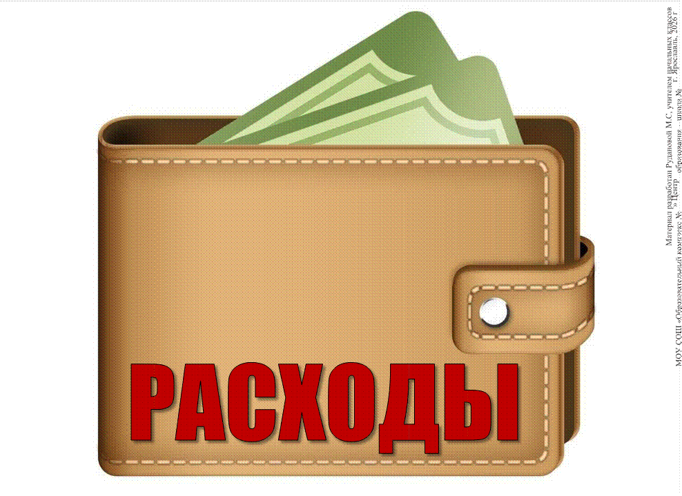 - 2 картинки в виде кошелька (с надписями «Доходы» и «Расходы»); 2 таблички с определениями: