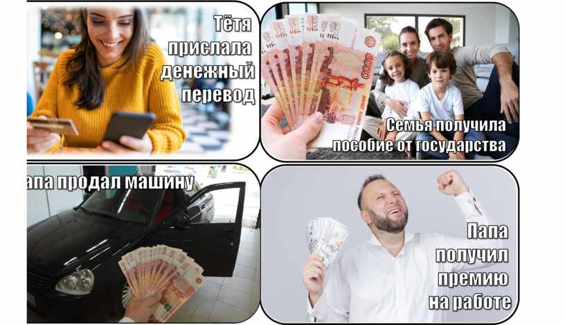 «Доходы — это деньги, которые приходят к нам (в семью, в копилку, на карту);