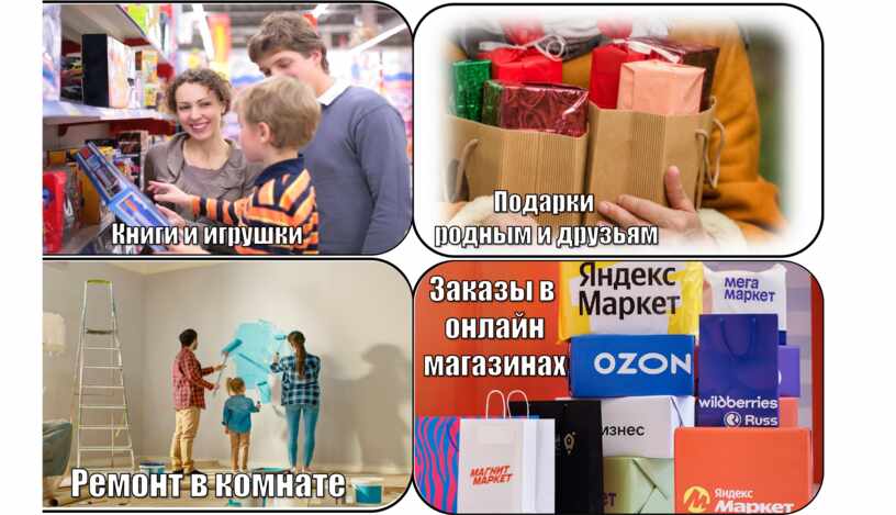 - «Расходы — это деньги, которые семья тратит на разные нужды (продукты, одежда, развлечения и т. д.)».