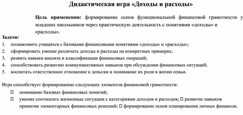 Цель применения: формирование основ функциональной финансовой грамотности у младших школьников через практическую деятельность с понятиями «доходы» и
