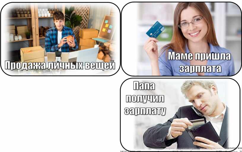 - Зачитывают вслух текст на своей карточке и описывают изображение (например: «На моей карточке изображён папа, который получает зарплату»).