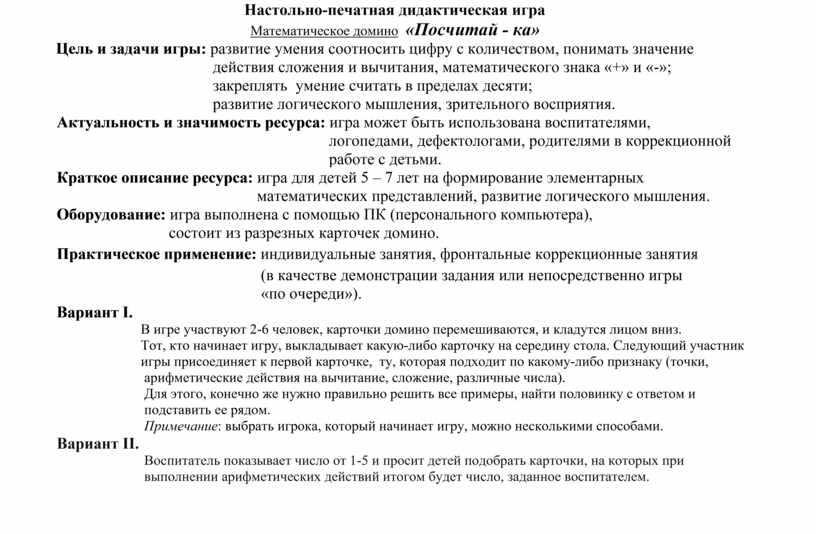 Математическое домино «Посчитай - ка»