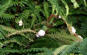 Ответ: на фотографии пена, которую выделяют личинки пилильщика Blasticotoma filiceti на Кочедыжнике (Athyrium filix-femina)
