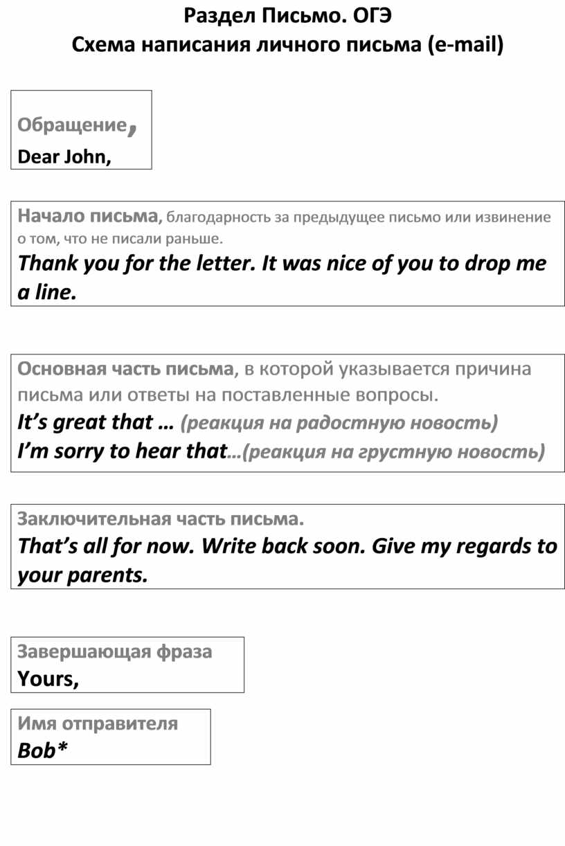 Основная часть письма, в которой указывается причина письма или ответы на поставленные вопросы. It’s great that … (реакция на радостную новость) I’m sorry to hear that…(реакция на грустную новость) |