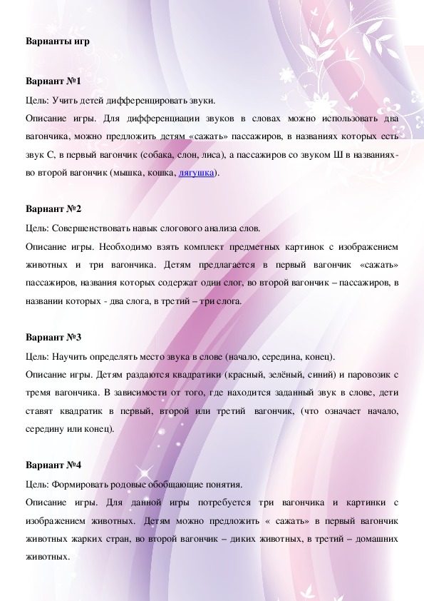 вагончика, можно предложить детям «сажать» пассажиров, в названиях которых есть
