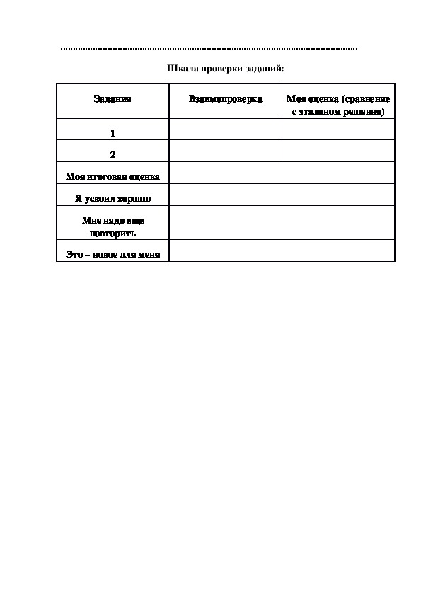 Шкала проверки заданий: