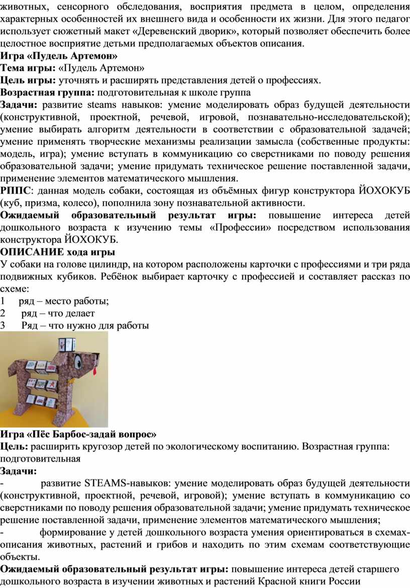 Задачи: развитие steams навыков: умение моделировать образ будущей деятельности (конструктивной, проектной, речевой, игровой, познавательно-исследовательской); умение выбирать алгоритм деятельности в соответствии с образовательной задачей; умение применять творческие механизмы реализации замысла (собственные продукты: модель, игра); умение вступать в коммуникацию со сверстниками по поводу решения образовательной задачи; умение придумать техническое решение поставленной задачи, применение элементов математического мышления.