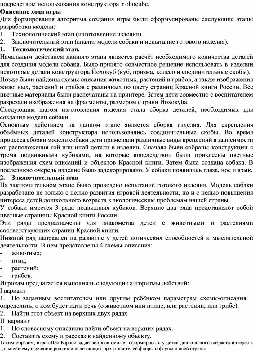 Ожидаемый образовательный результат игры: повышение интереса детей старшего дошкольного возраста в изучении животных и растений Красной книги России посредством использования конструктора Yohocube.