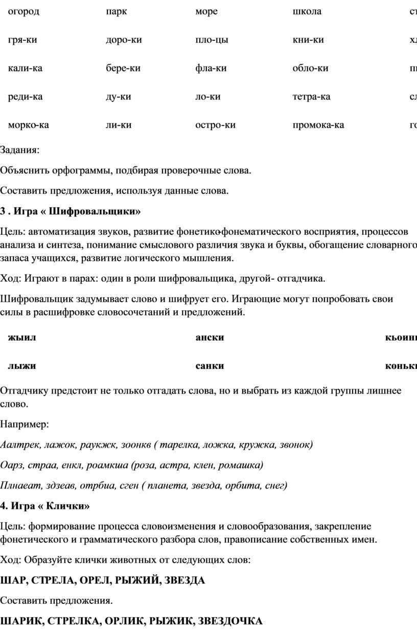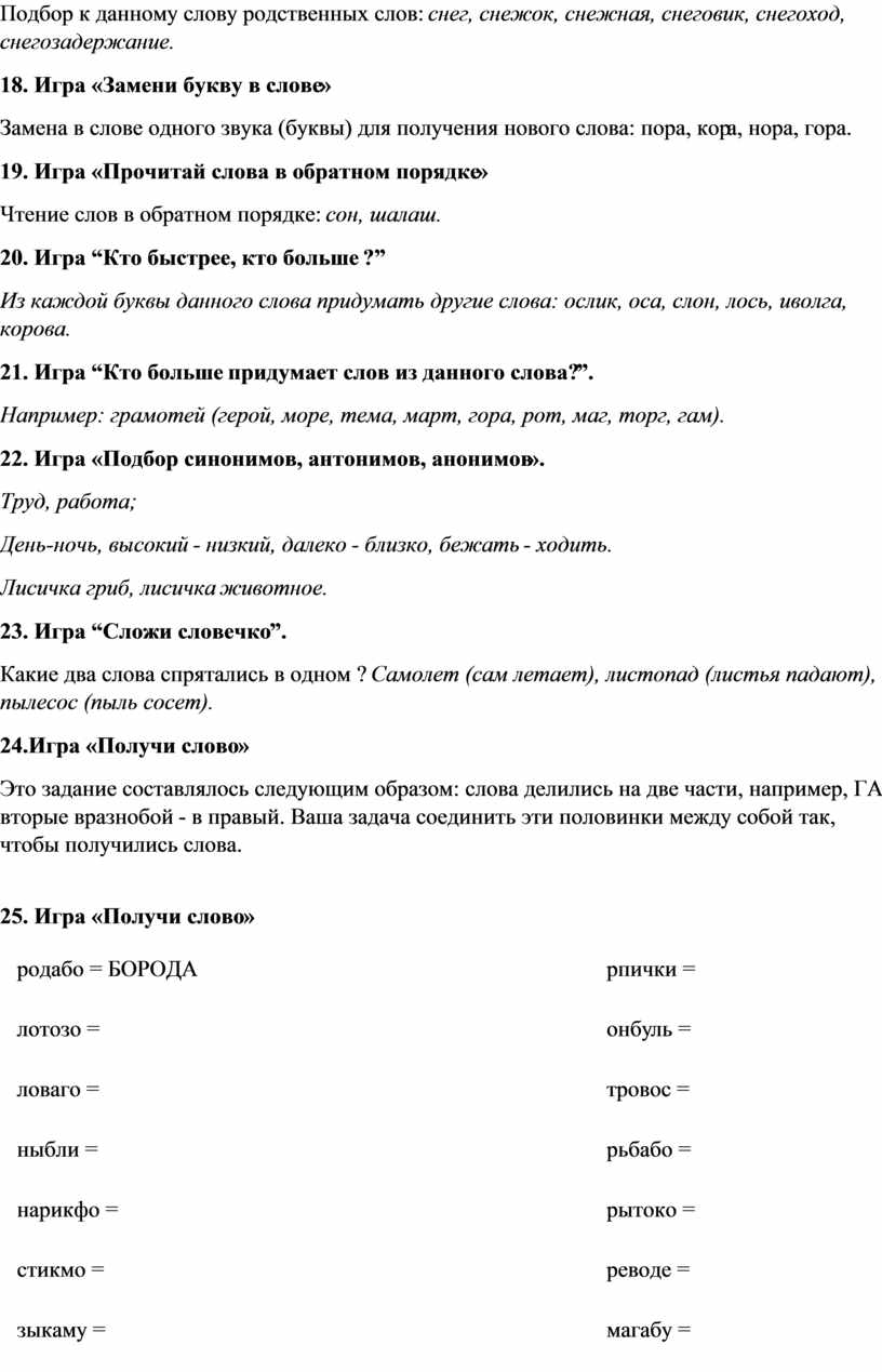 - словесные игры,