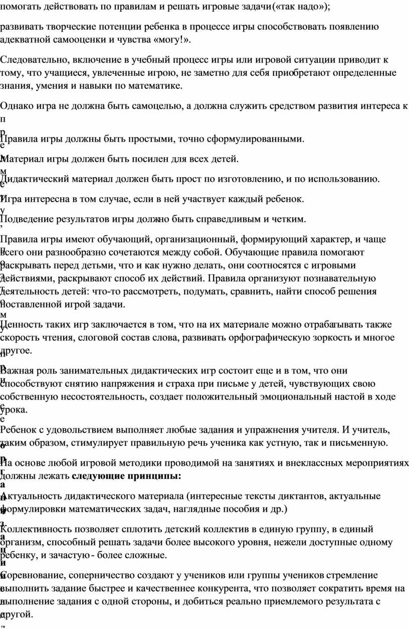 Дидактическая игра является ценным средством воспитания умственной активности детей, она стимулирует психические процессы, вызывает у учащихся живой интерес к процессу познания. В ней дети охотно представляют значительные трудности, тренируют свои силы, развивают способности и умения. Она помогает сделать любой учебный материал увлекательным, создает радостное рабочее настроение, облегчает процесс усвоения знаний.