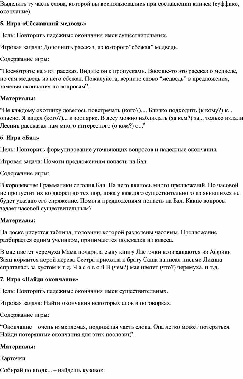 Цель игры: закрепление падежей и предлогов