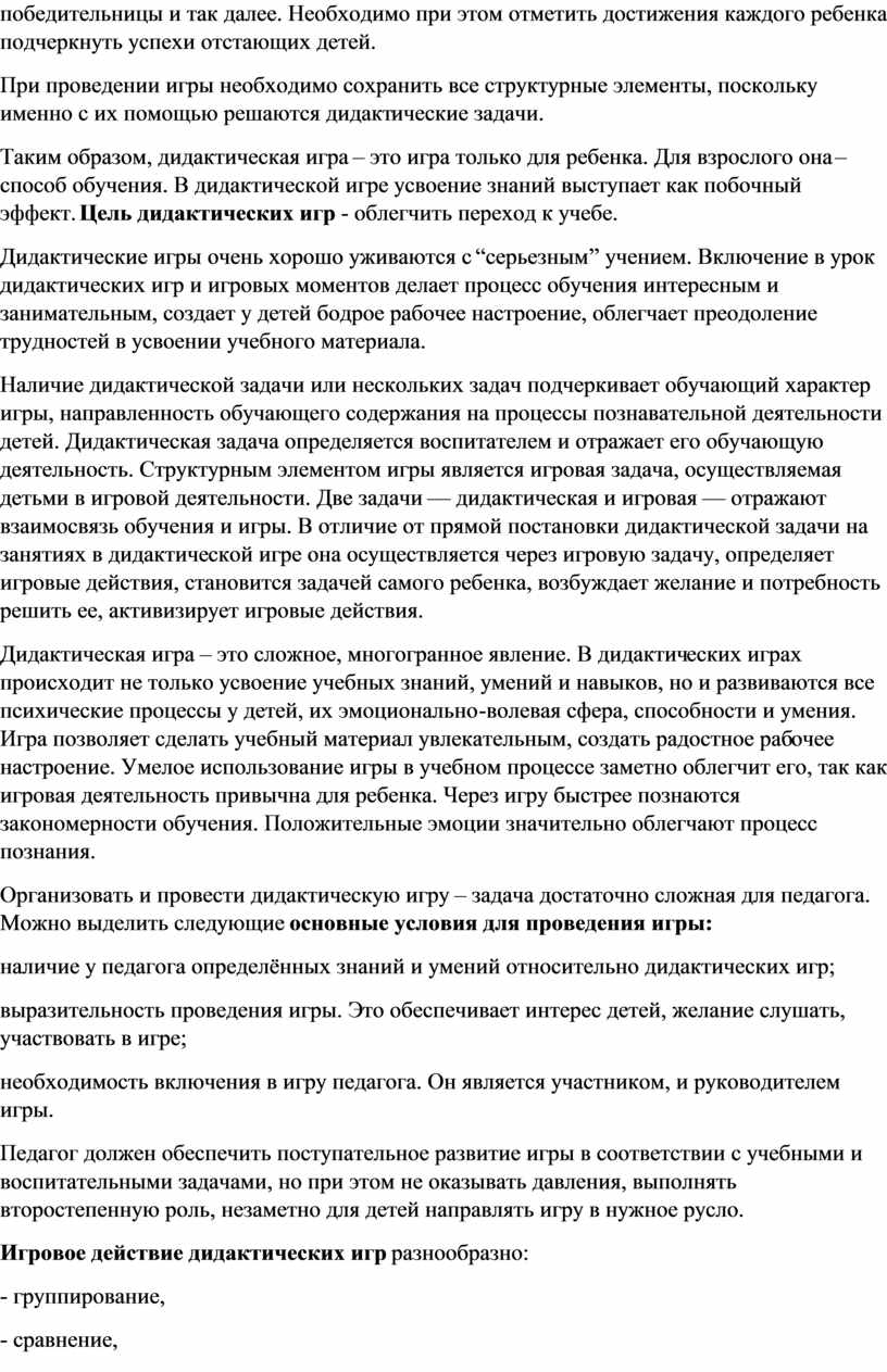 Организовать и провести дидактическую игру – задача достаточно сложная для педагога. Можно выделить следующие основные условия для проведения игры: