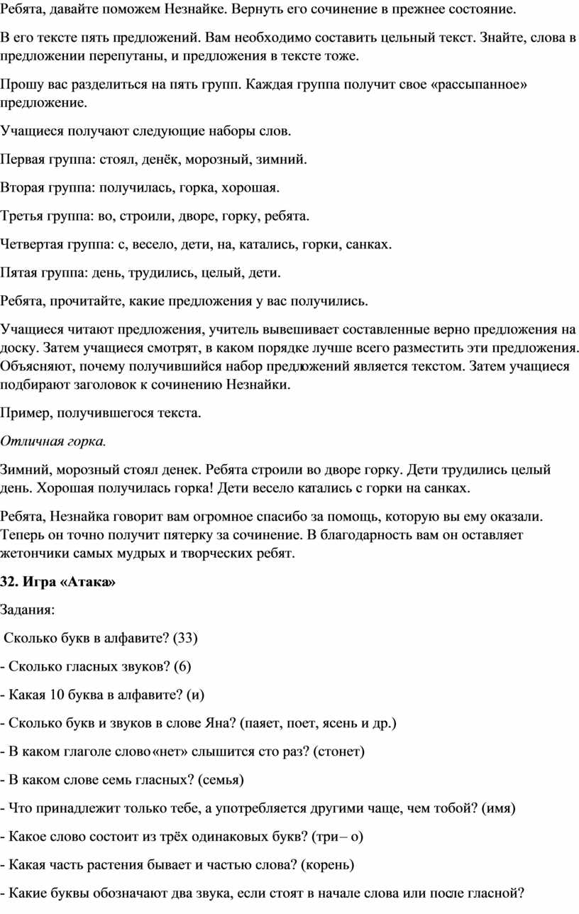 31. Игра «Рассыпанный текст».
