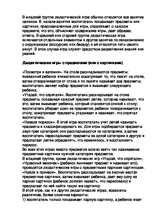 должно быть достаточным для вовлечения в игру всех детей.В младшей группе дидактической игре обычно отводится все занятие