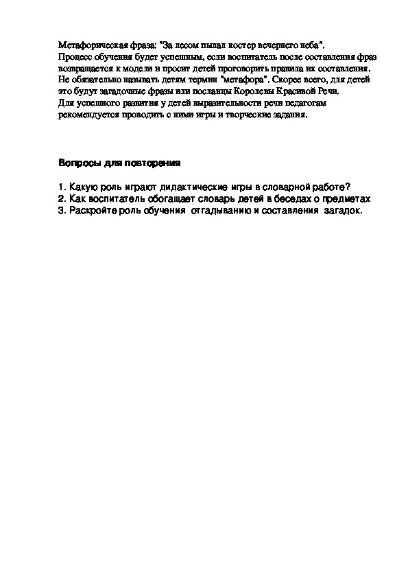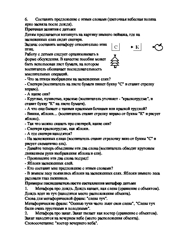 гарантировать, что дети будут составлять фразы метафорического плана в