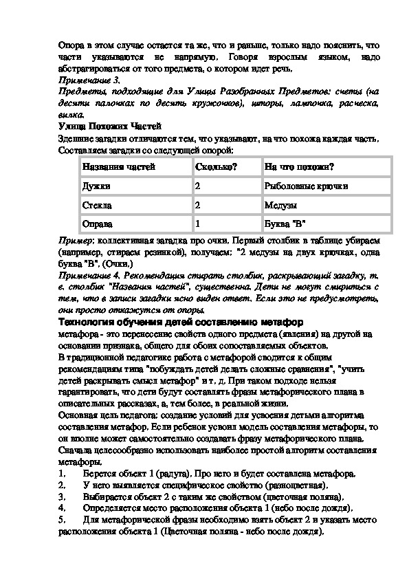 Технология обучения детей составлению метафор