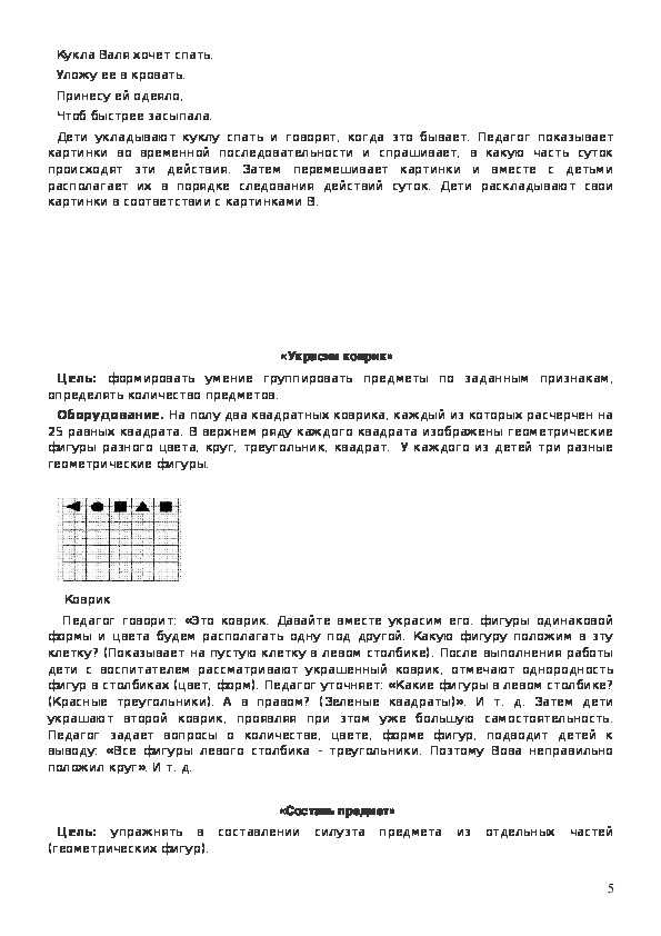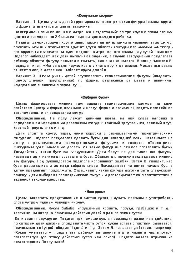 следующему ребенку и предлагает другую форму. Игра продолжается, пока все предметы не подойдут